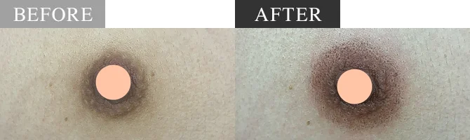ご自身の乳輪の色をより明るく・薄く等の色の変更は色の入り方に個人差があり、難しい場合がございます。